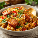 Cajun Dirty Rice with Smoked Sausage is a bold, spicy one-pot meal made with andouille sausage, aromatic vegetables, and Cajun spices — a true Southern classic.