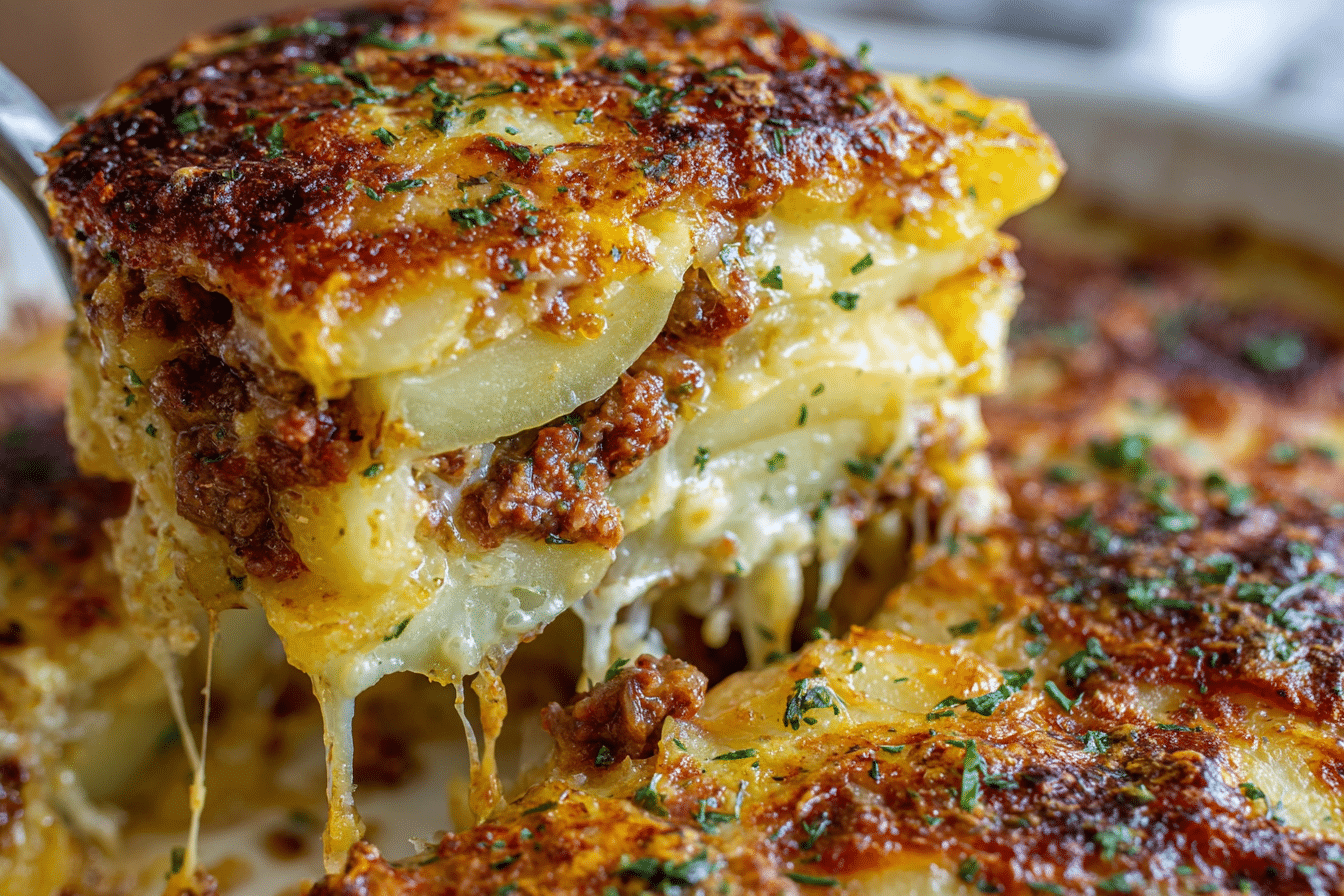 Think of it like a cross between a cheeseburger and scalloped potatoes — meaty, cheesy, and packed with savory flavor. It’s made with simple ingredients you likely already have on hand and comes together easily with a few layers and a little oven time.