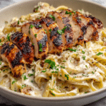 This Chicken Alfredo Pasta is a warm, decadent dish featuring juicy, pan-seared chicken tossed with tender fettuccine and coated in a luxurious garlic Parmesan cream sauce. It’s the kind of meal that wraps you in comfort and satisfies with every bite—perfect for family dinners, cozy date nights, or impressing guests without stress.