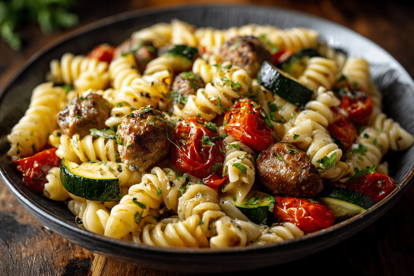 Roast your veggies: For extra depth, roast zucchini and tomatoes on a sheet pan at 425°F before adding to the pasta.