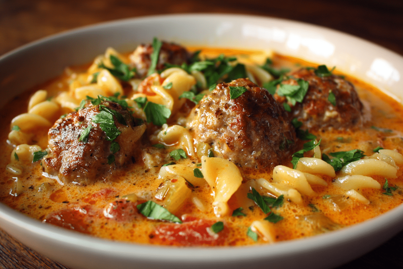 A rich and comforting Italian soup made with tender meatballs, a creamy tomato broth, and hearty vegetables. Perfect for cozy nights or make-ahead meals.