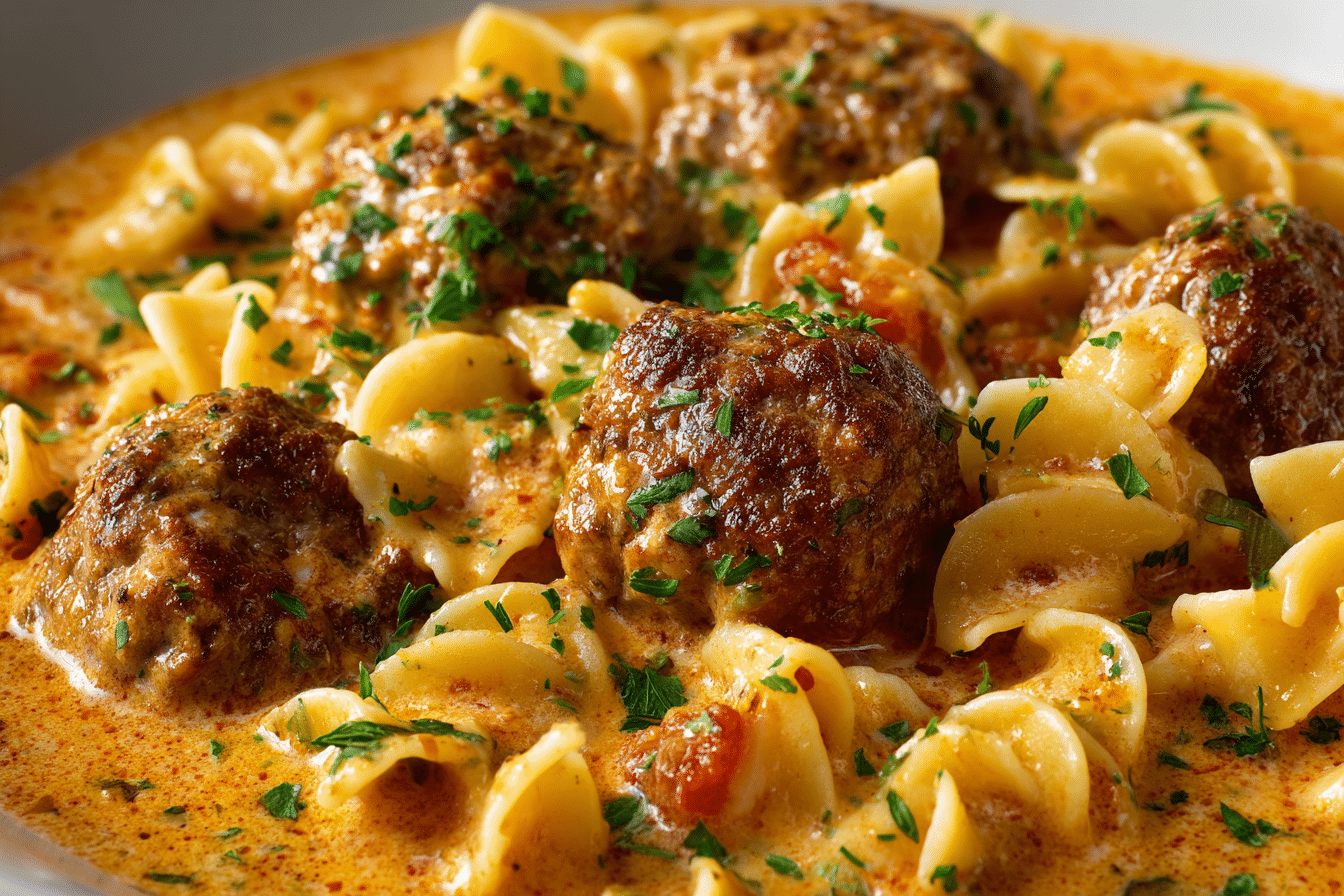 This one-pot dish is inspired by the rustic flavors of Italian home cooking — think rich tomato base, garlic, oregano, and hearty vegetables, all tied together with a swirl of cream (or a dairy-free alternative) for a luscious finish. The meatballs are the star: juicy, well-seasoned, and simmered to tender perfection.