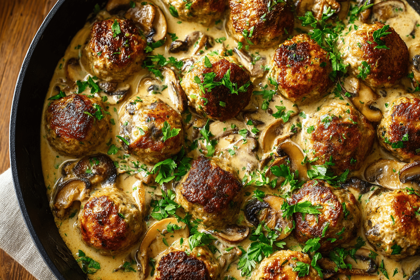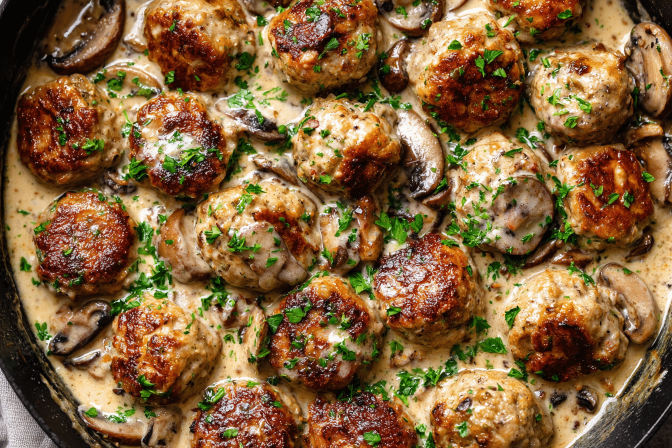 Creamy Mushroom Chicken Meatballs – Cozy Skillet Comfort
