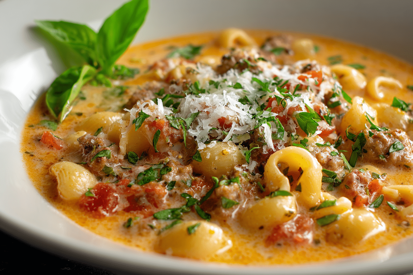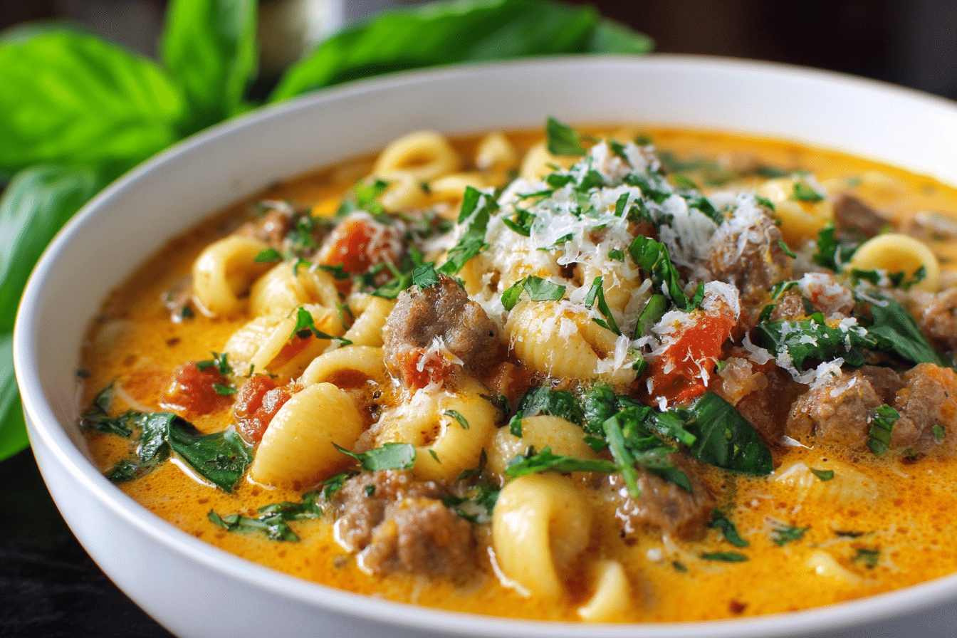 This creamy Parmesan Italian sausage ditalini soup is rich, savory, and loaded with flavor. A one-pot meal perfect for cozy nights and family dinners.