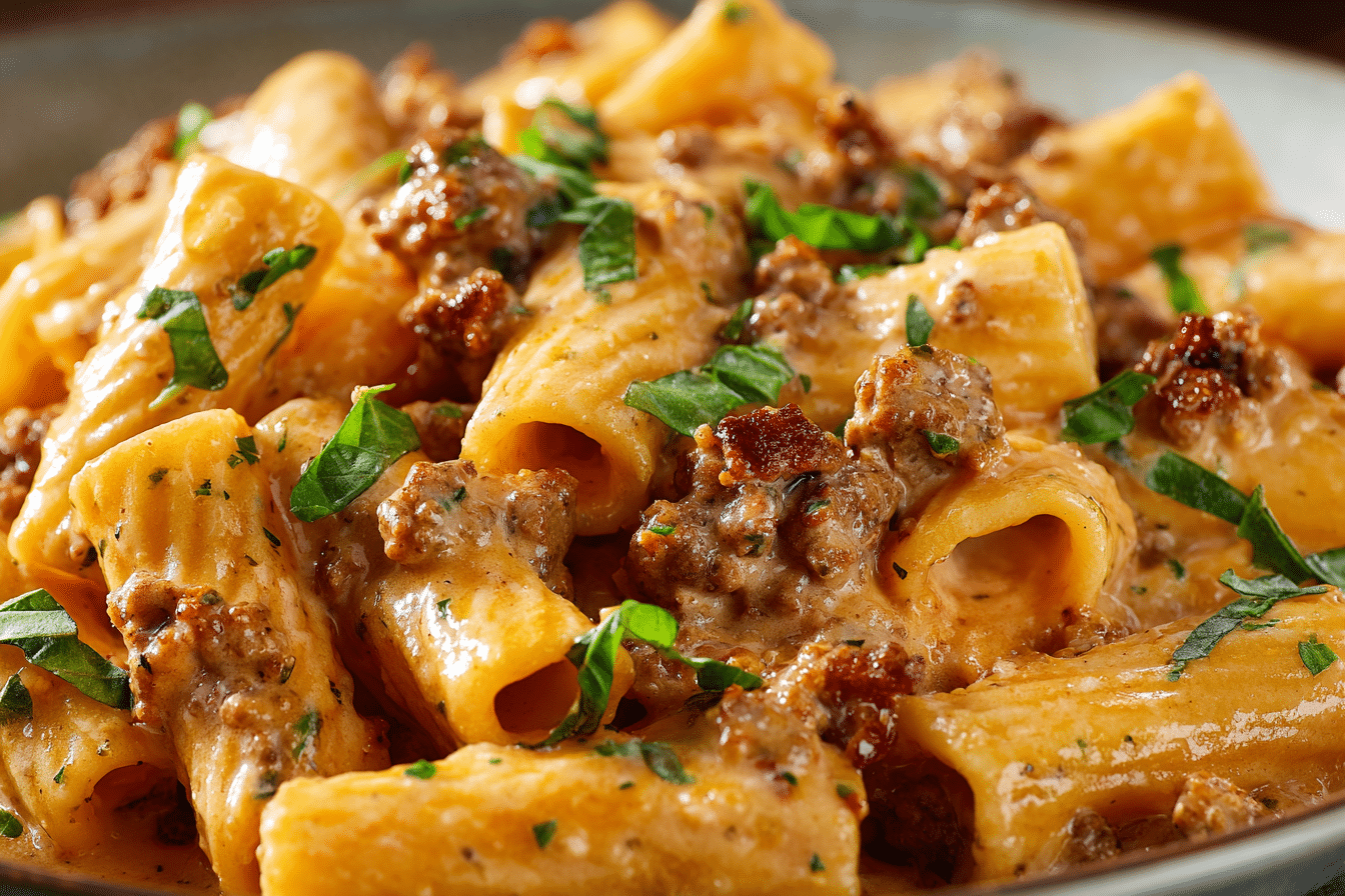 A rich and comforting pasta dish made with rigatoni, Italian sausage, and a creamy tomato sauce — perfect for weeknight dinners or family gatherings.