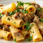 Creamy sausage rigatoni is the kind of comforting, flavor-packed pasta dish that feels both indulgent and heartwarming. It brings together savory Italian sausage, ridged rigatoni pasta, and a velvety tomato cream sauce for a rich, satisfying meal that’s perfect for weeknights or cozy Sunday dinners.