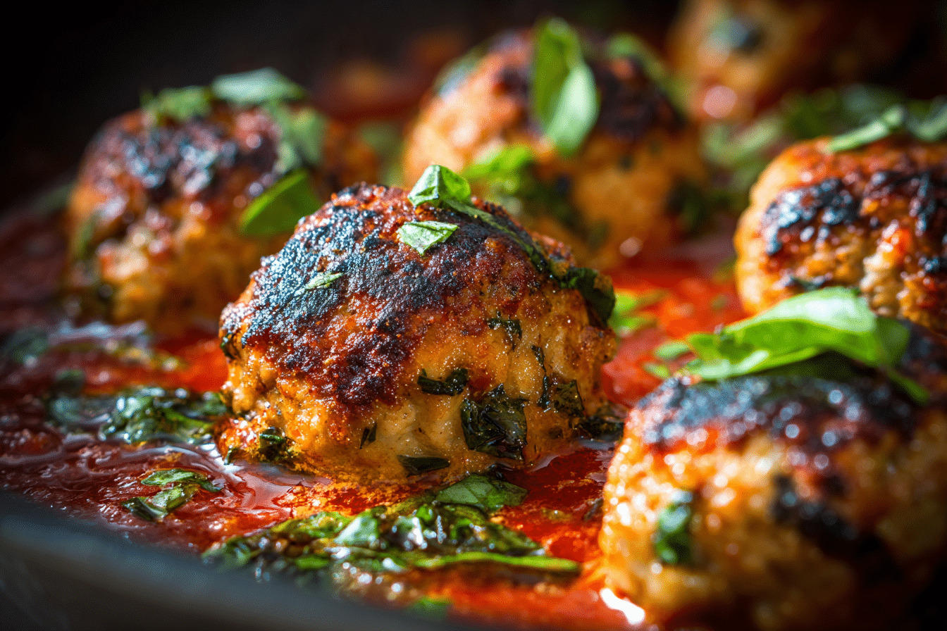 Use ground chicken, turkey, or beef for the base of your meatballs. Ground chicken or turkey keeps it lean and light, while beef or pork adds richness and deeper flavor. A mix of ground beef and pork creates a classic, juicy blend.