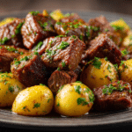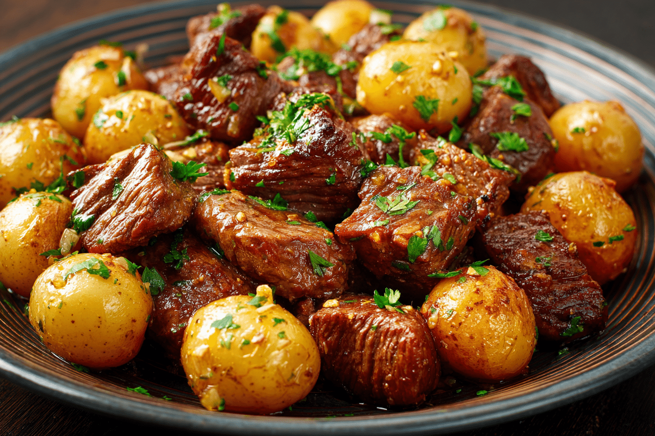 Tender beef bites and baby potatoes slow-cooked in a garlicky butter sauce — an effortless, cozy one-pot meal that’s perfect for weeknights or weekends.