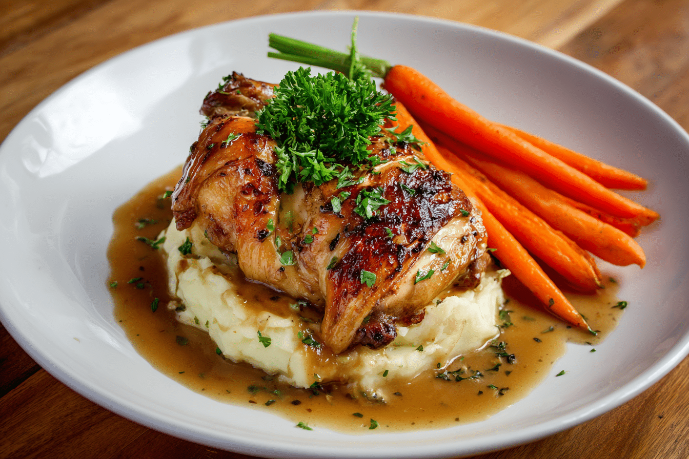 A simple and satisfying one-plate dinner with garlic herb chicken and caramelized roasted carrots—flavorful, balanced, and ready in under an hour.