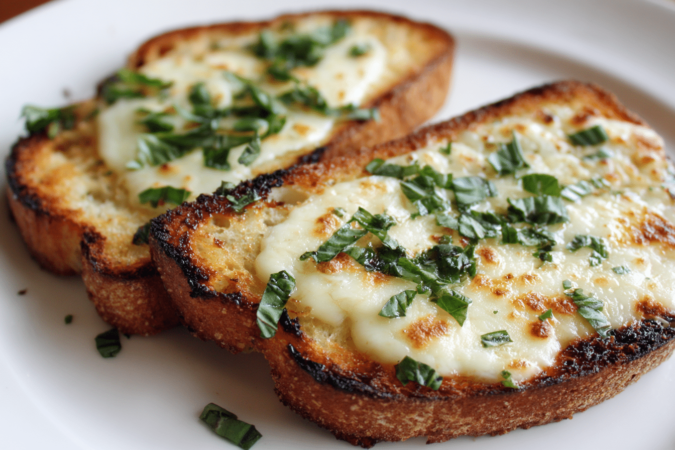 Garlic Bread Base: Thick slices of bakery-style garlic bread, or store-bought garlic bread loaves. The buttery, herby base crisps up in the oven and holds toppings like a pizza crust.