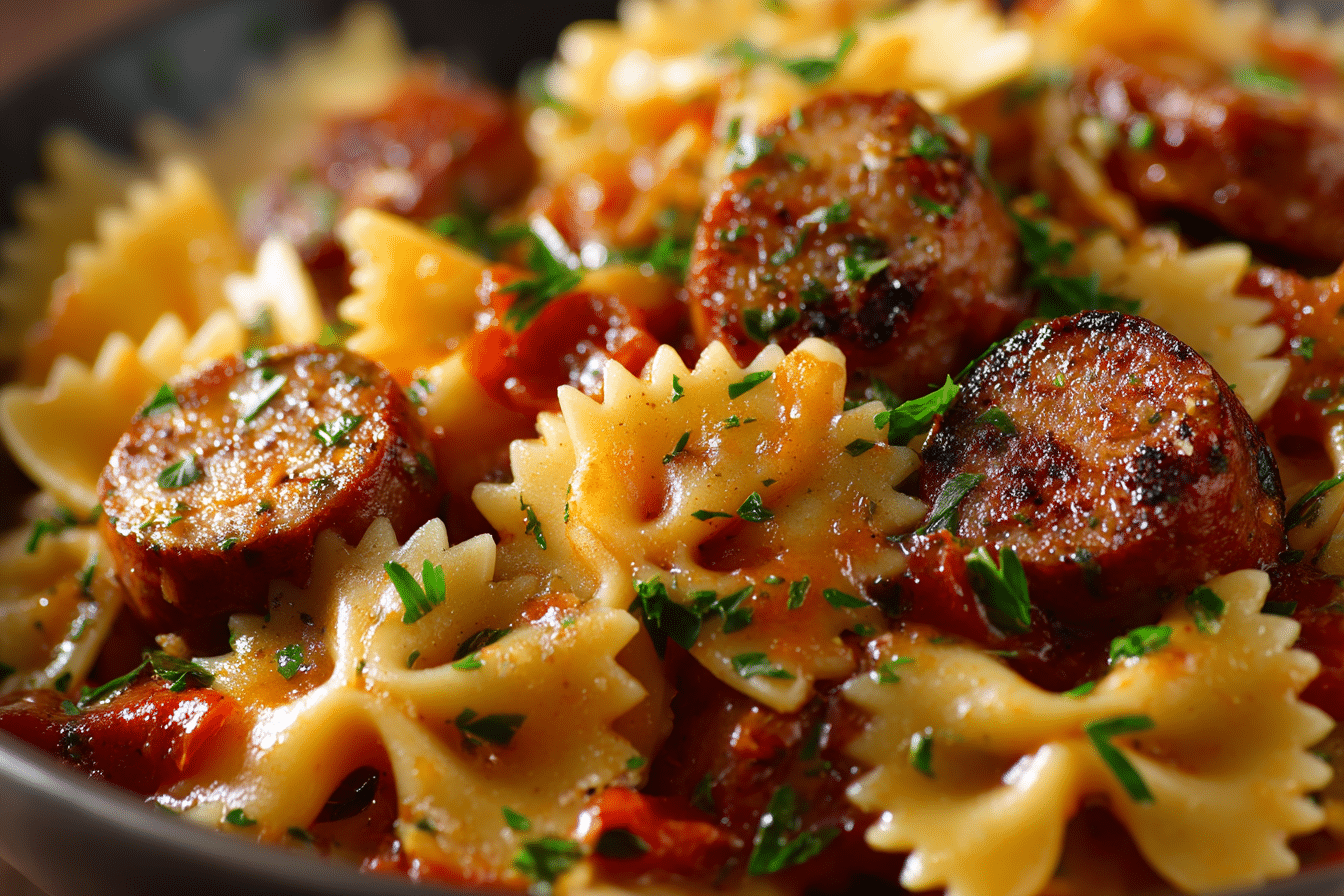 Italian Sausage Bow Tie Pasta is the kind of dinner that feels like a hug on a plate — hearty, comforting, and full of bold Italian flavors. This simple yet satisfying dish features savory sausage, tender bow tie (farfalle) pasta, and a rich tomato cream sauce that clings to every curve and fold.