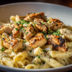A creamy, cheesy, and garlicky one-pan pasta with juicy chicken and tender noodles, all cooked in one skillet for a comforting dinner that’s quick and full of flavor.