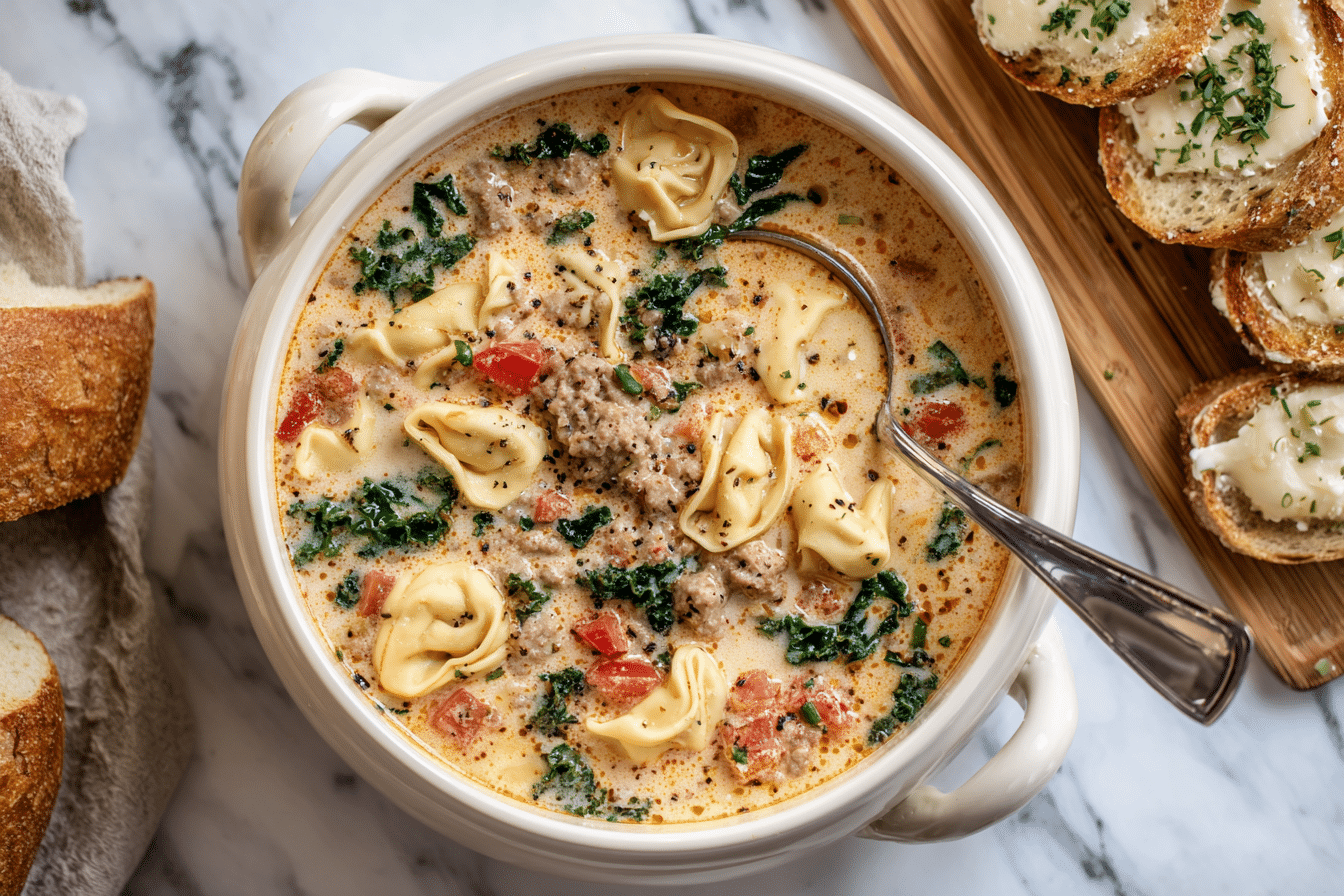 When you’re craving something warm, filling, and irresistibly flavorful, this Spicy Sausage and Tortellini Soup hits all the right notes. Packed with tender cheese tortellini, savory Italian sausage, fire-roasted tomatoes, and a creamy, slightly spicy broth, it’s the kind of soup that makes you want seconds — and maybe thirds.