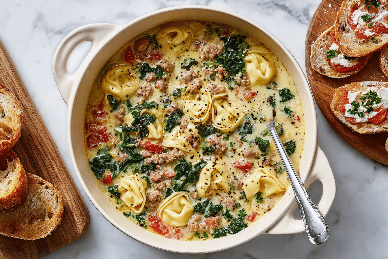 When you’re craving something warm, filling, and irresistibly flavorful, this Spicy Sausage and Tortellini Soup hits all the right notes. Packed with tender cheese tortellini, savory Italian sausage, fire-roasted tomatoes, and a creamy, slightly spicy broth, it’s the kind of soup that makes you want seconds — and maybe thirds.