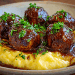 This version relies on the slow cooker to gently cook the meatballs while the gravy develops depth and smoothness over several hours. As everything simmers together, the meatballs absorb the savory sauce, becoming tender and full of flavor without requiring constant attention.